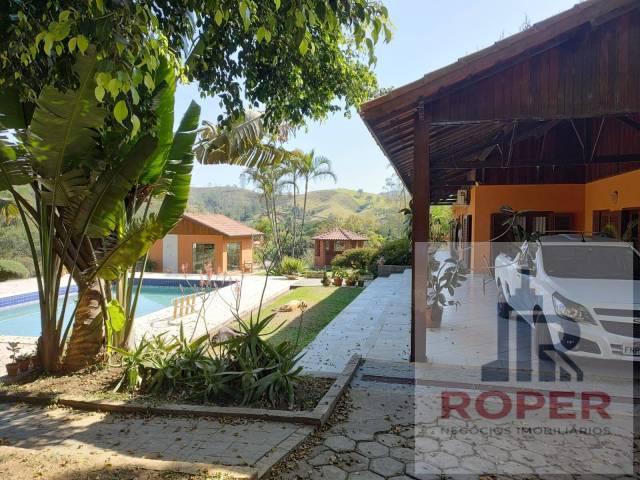 Chácara com 5.000 m² área total, Casa térrea avarandada com 4 dormitórios, sendo duas suítes, sala de estar, sala de jantar, lareira, cozinha americana e 4 vagas de garagem cobertas. Estrutura e Lazer- piscina, espaço gourmet com churrasqueira, casa do caseiro, lago com carpas, canil, galinheiro, campo de futebol, pomar, jardim, internet e telefone. Chácara com escritura, mas não aceita financiamento bancário.